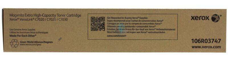 El Cartucho de Toner Xerox 106R03747 es un consumible original de la marca Xerox, específicamente diseñado para Impresoras Láser Xerox Versalink C7020, Versalink C7025 y Versalink C7030. Xerox lleva mucho tiempo trabajando para lograr reducir al mínimo el uso de sustancias peligrosas en sus productos.